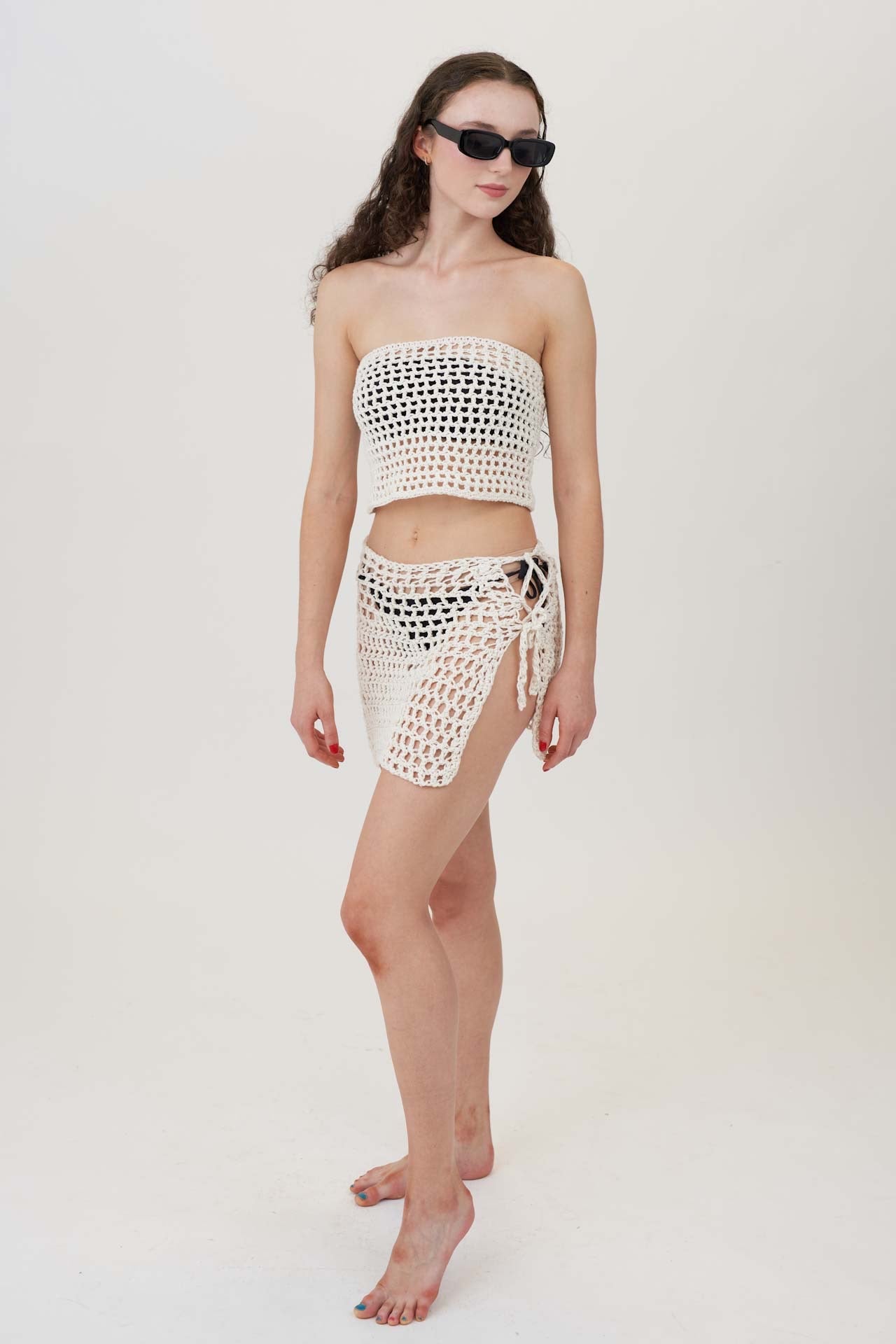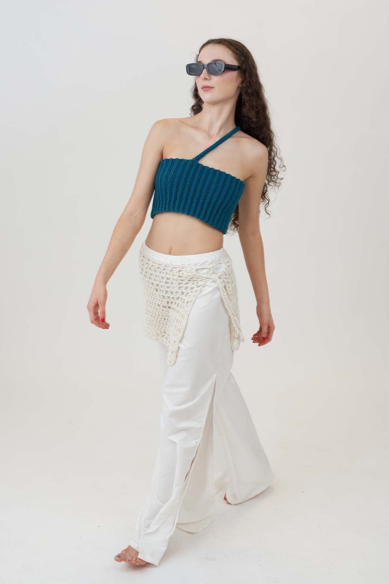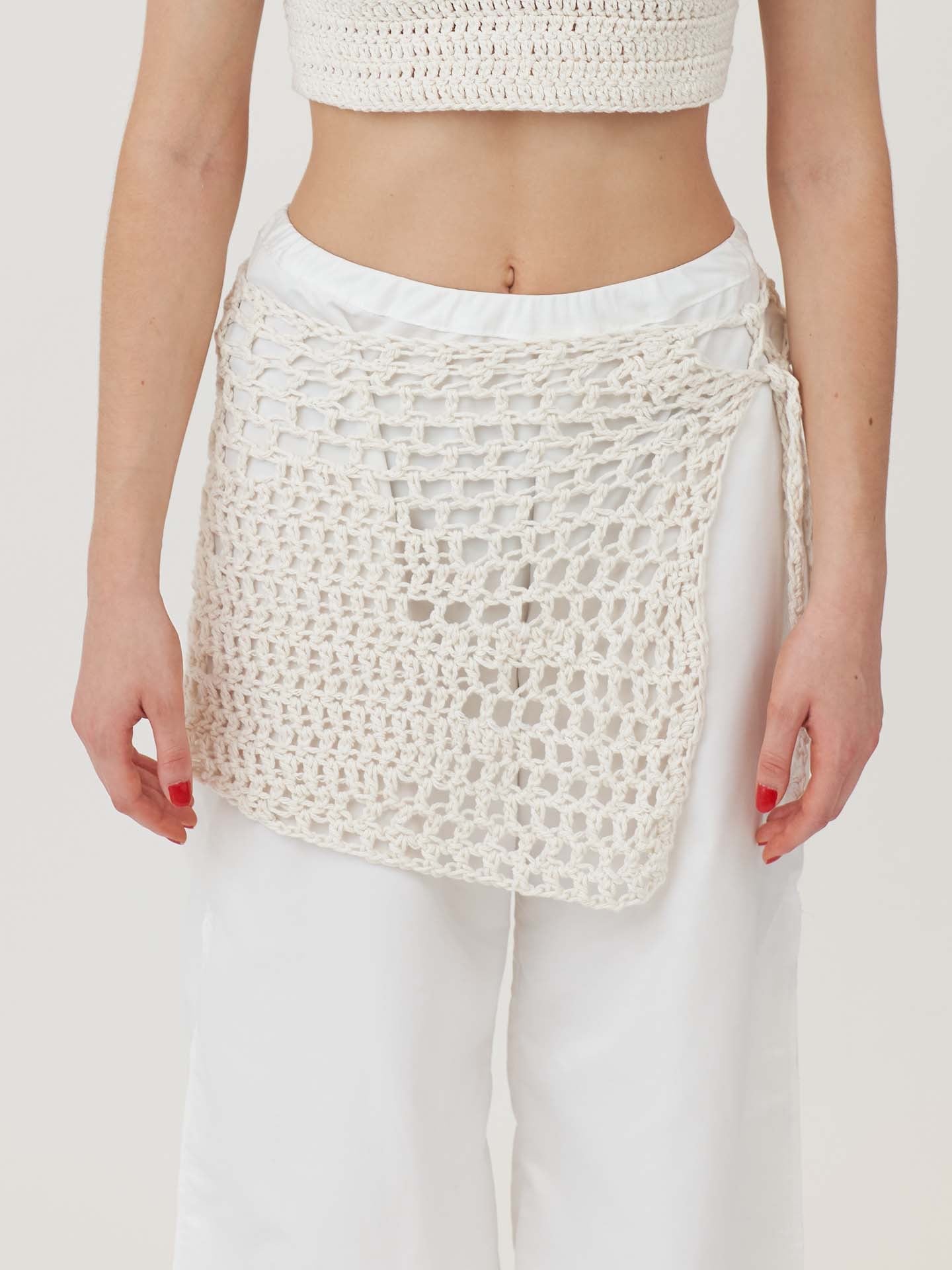 As a skirt/pareo it ties at the side. It’s see through and cool to texture up your fit