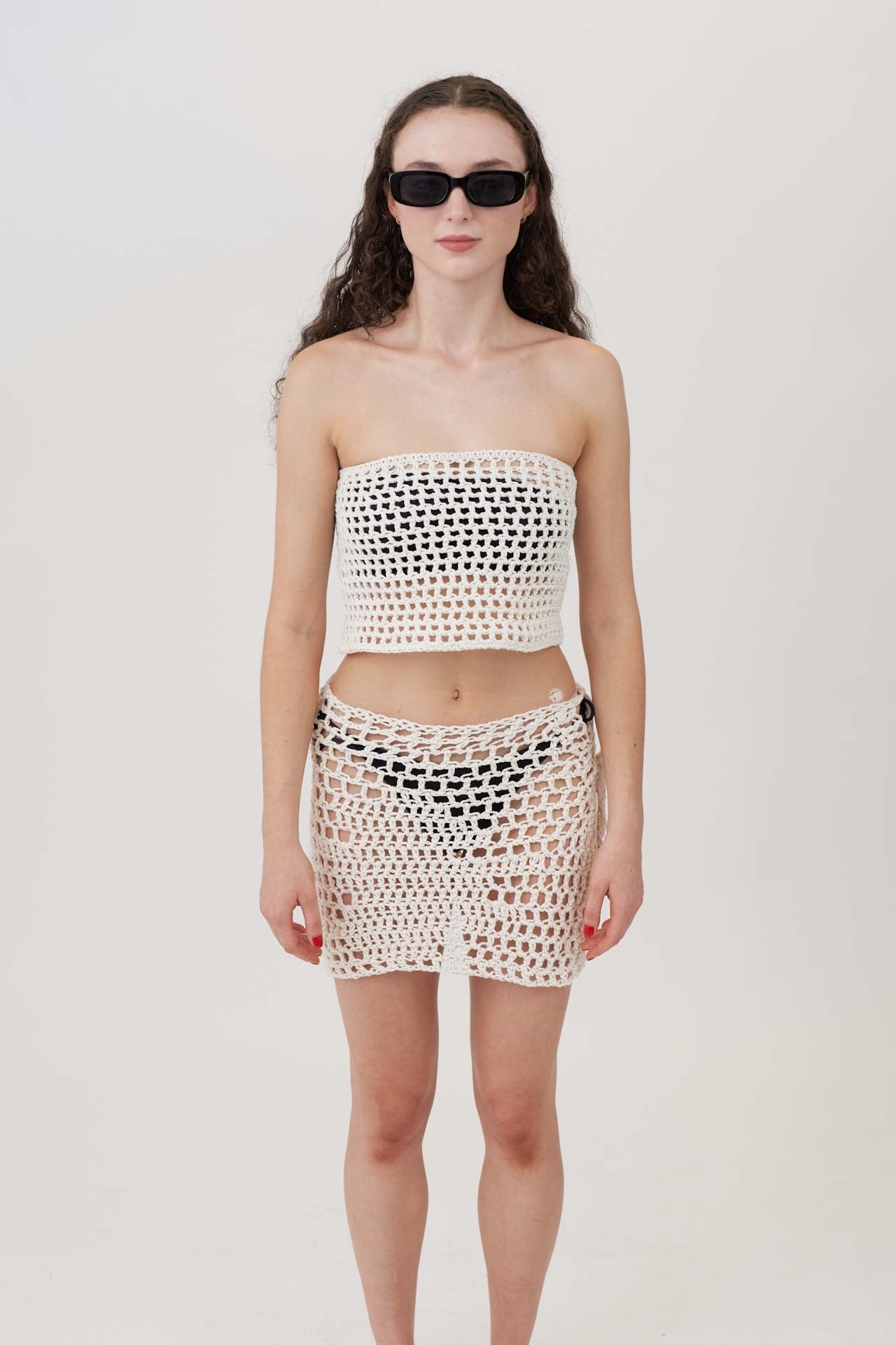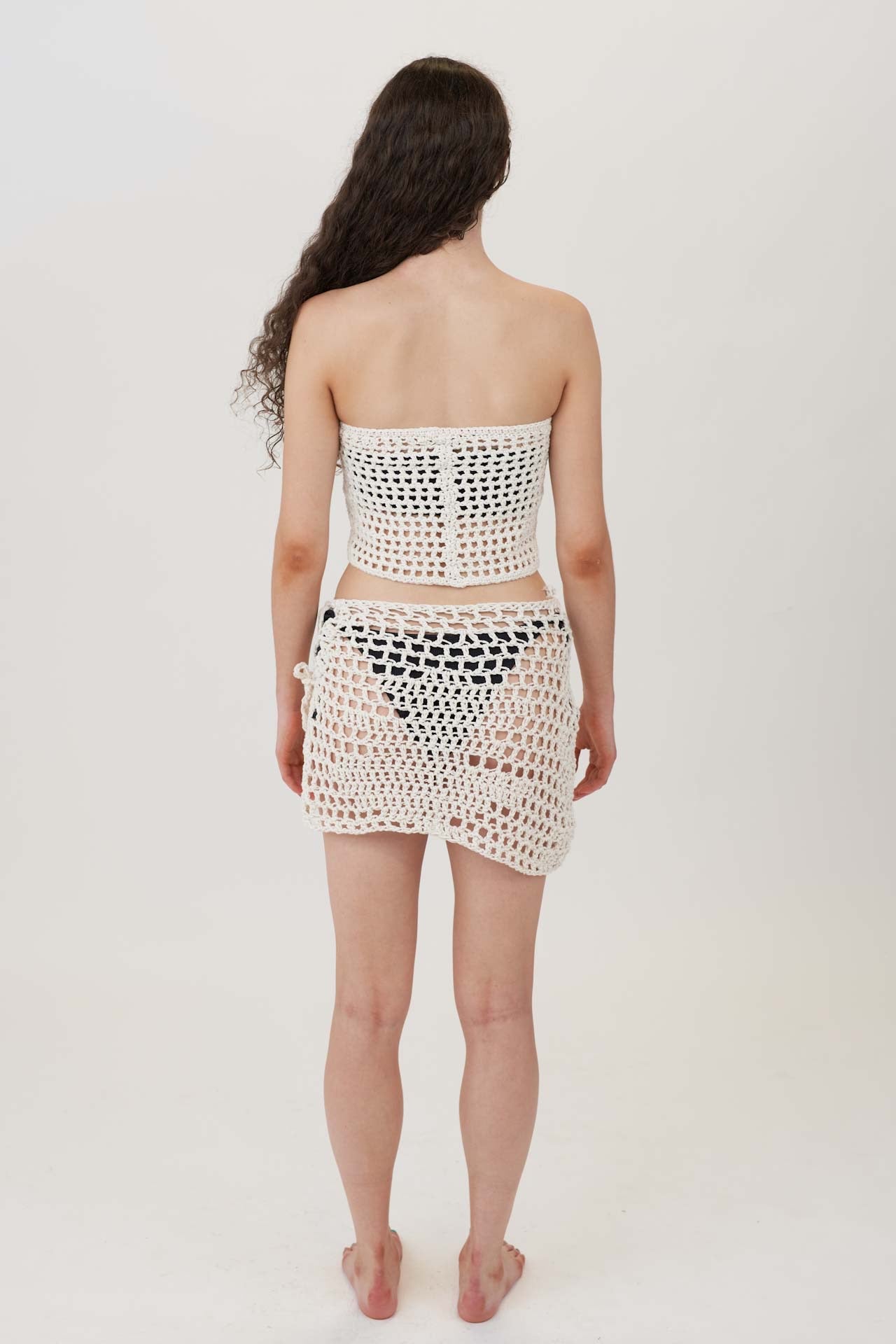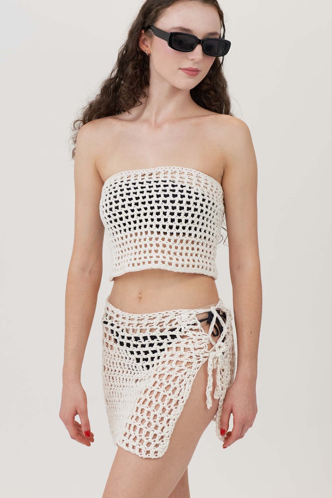As a skirt/pareo it ties at the side. It’s see through and cool to texture up your fit