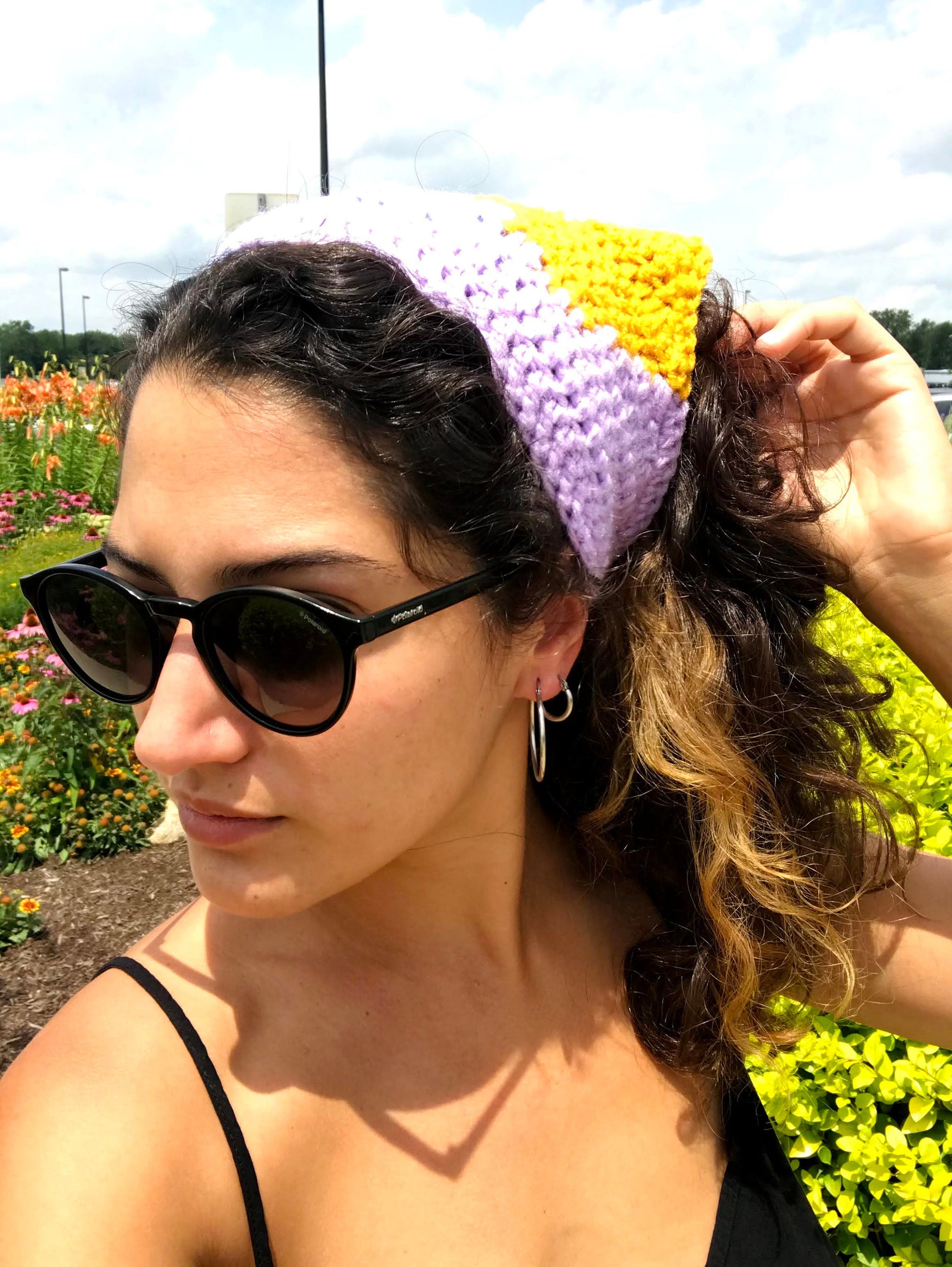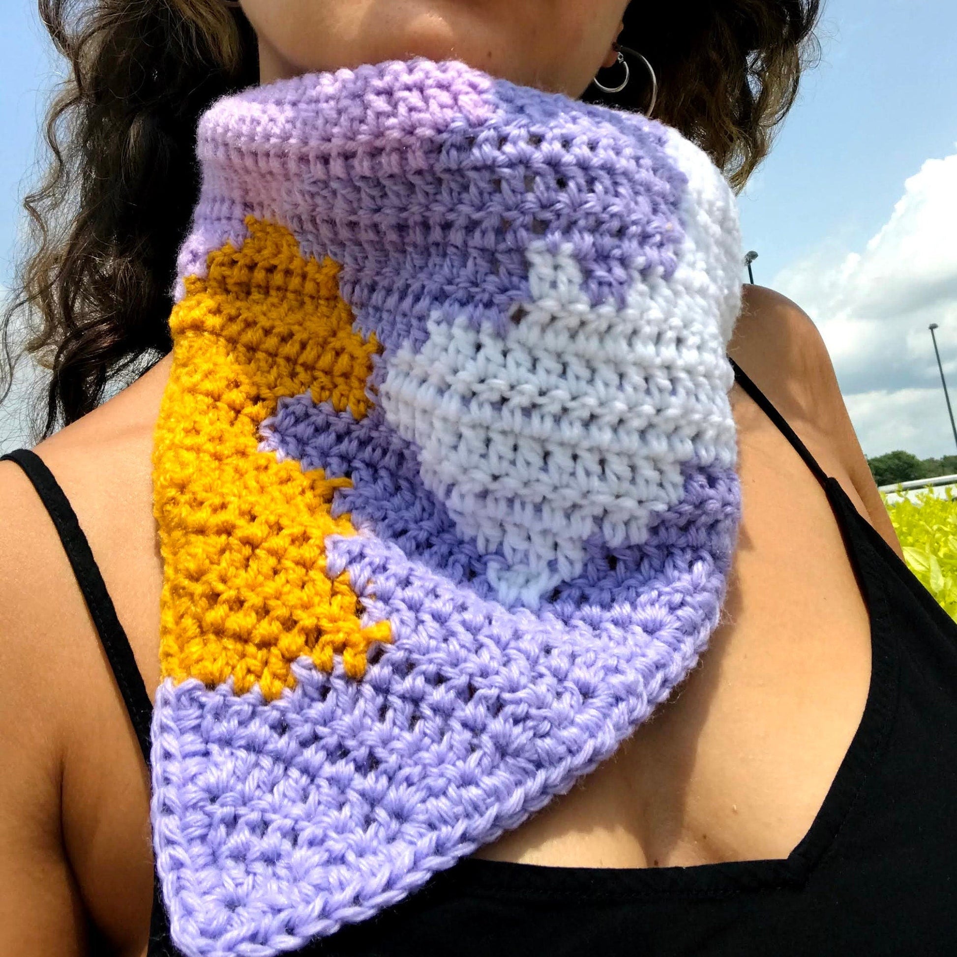 Colourfull reversible bandana, crocheted in Double crochet. Very easy and fast!