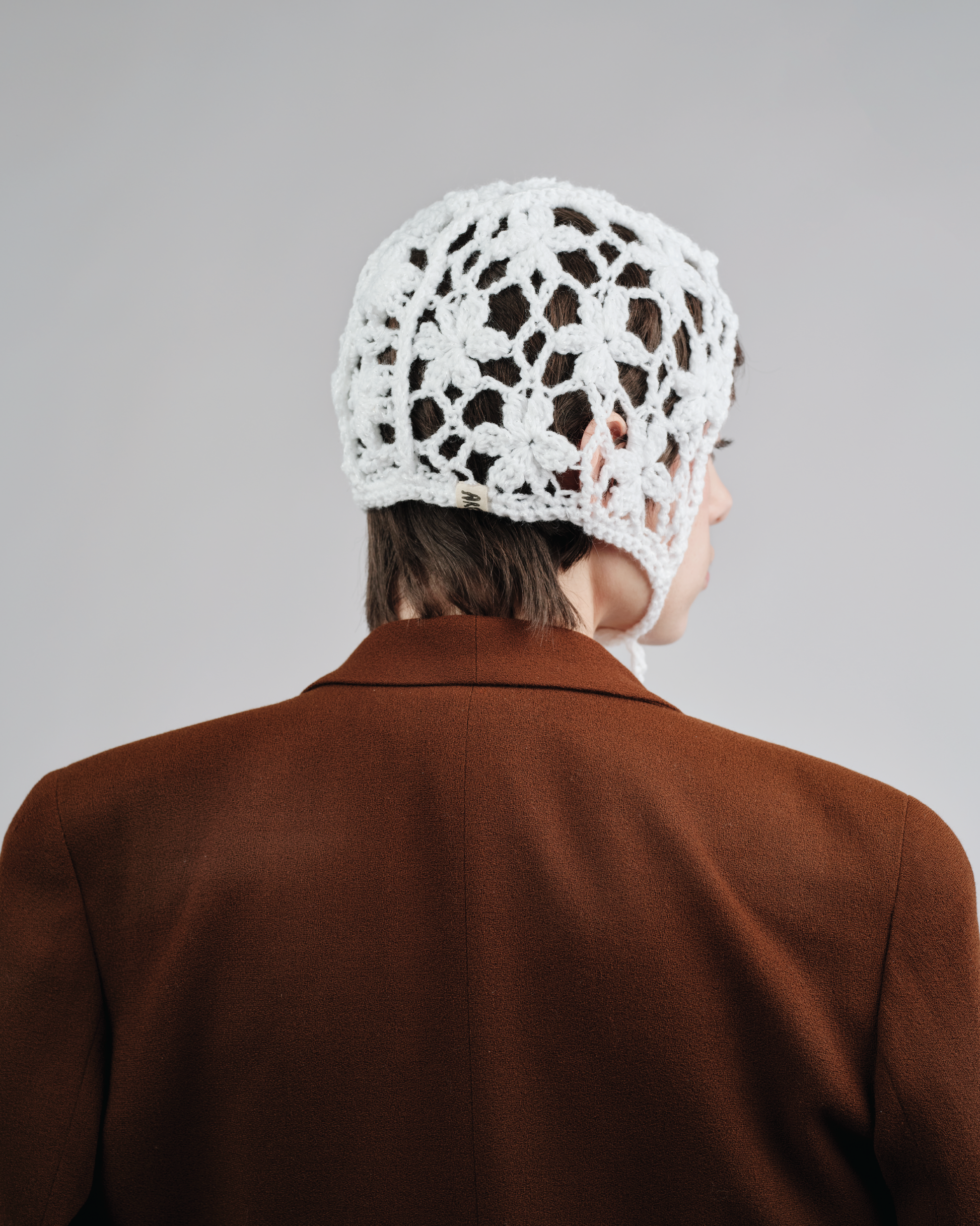 1/1 Hand crochet Bonnet with a textured flower pattern