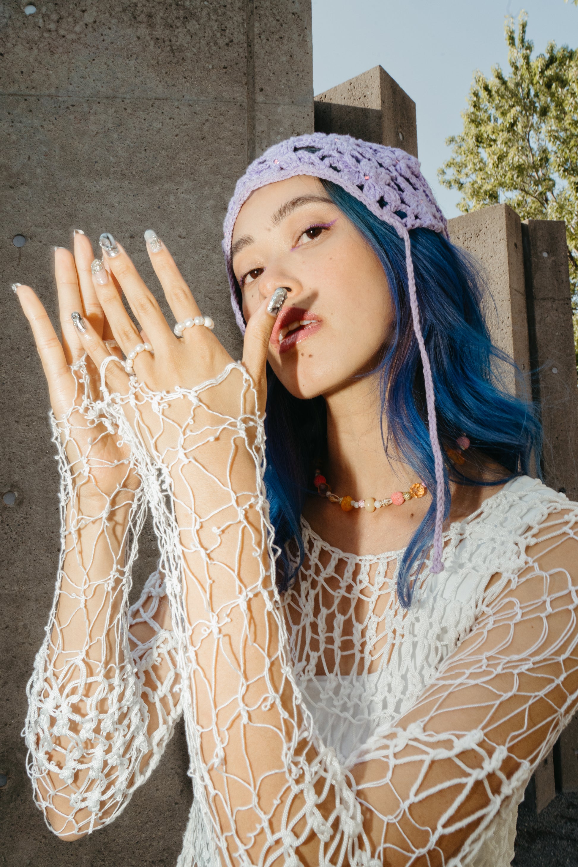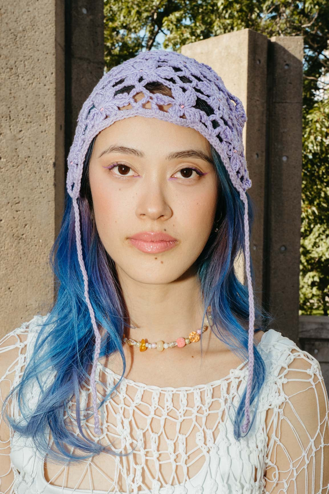 1/1 piece in Lilac. Made in cotton with beads on the centre of each flower, stitched by hand.