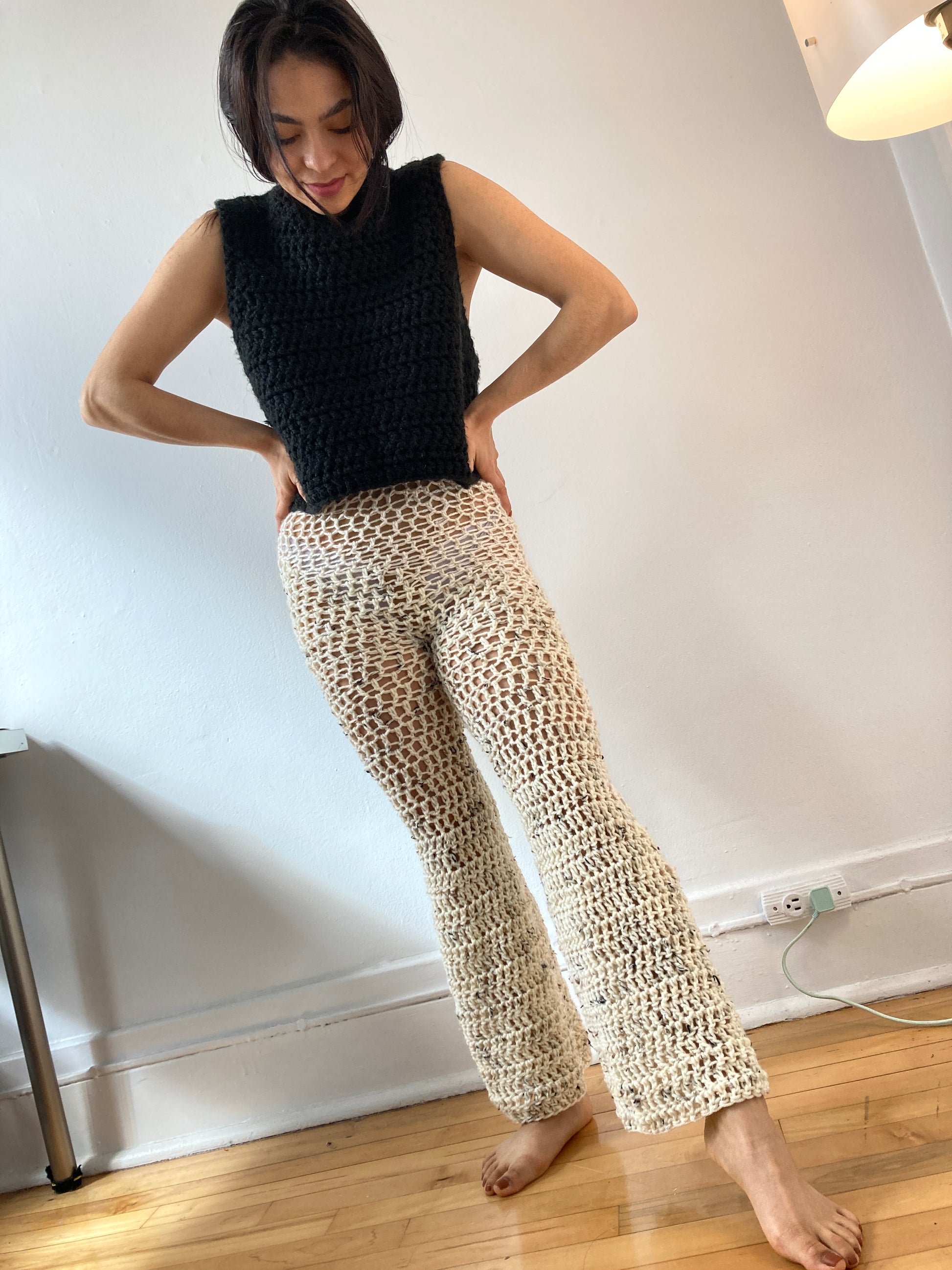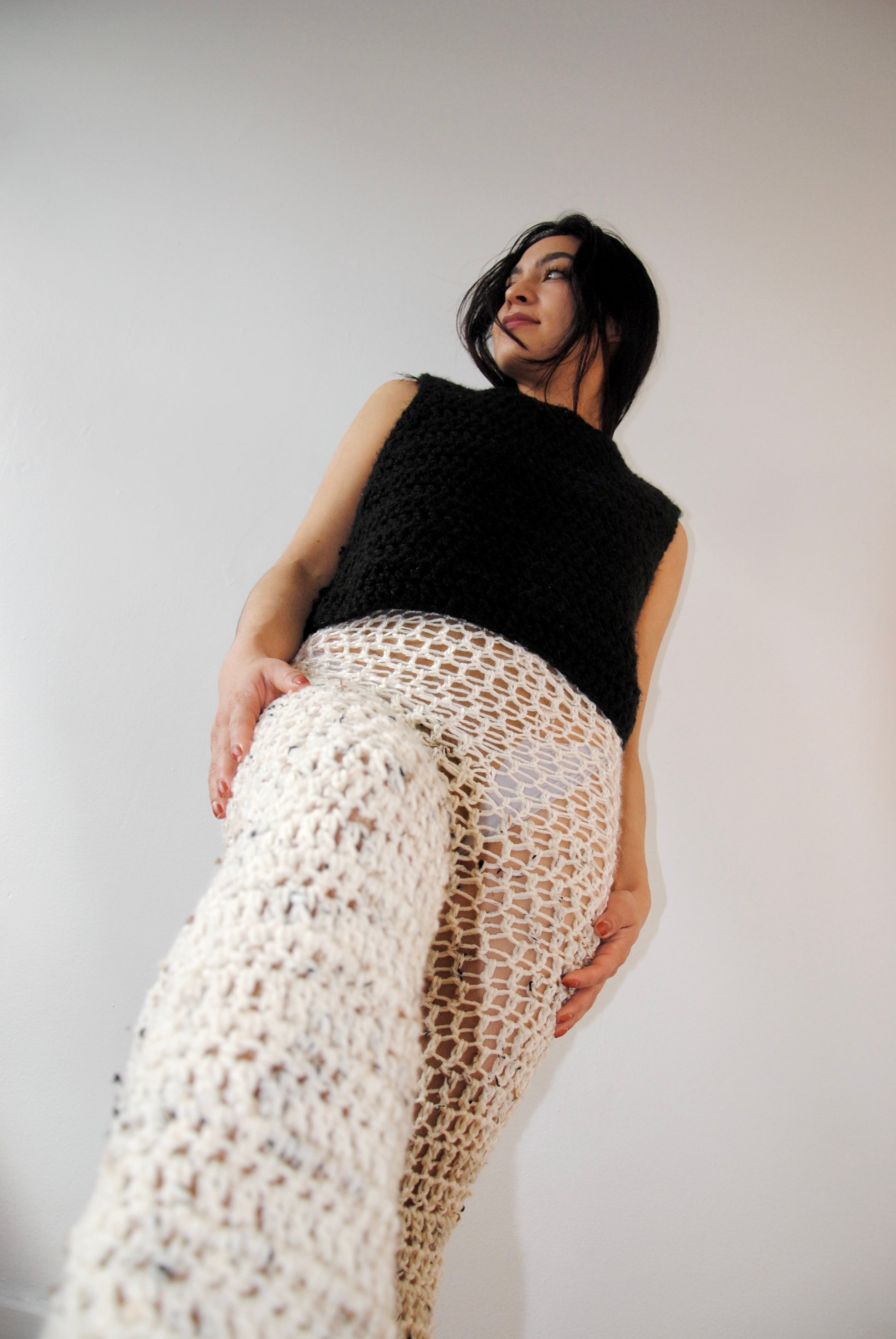 Handmade with mixed materials, in off white