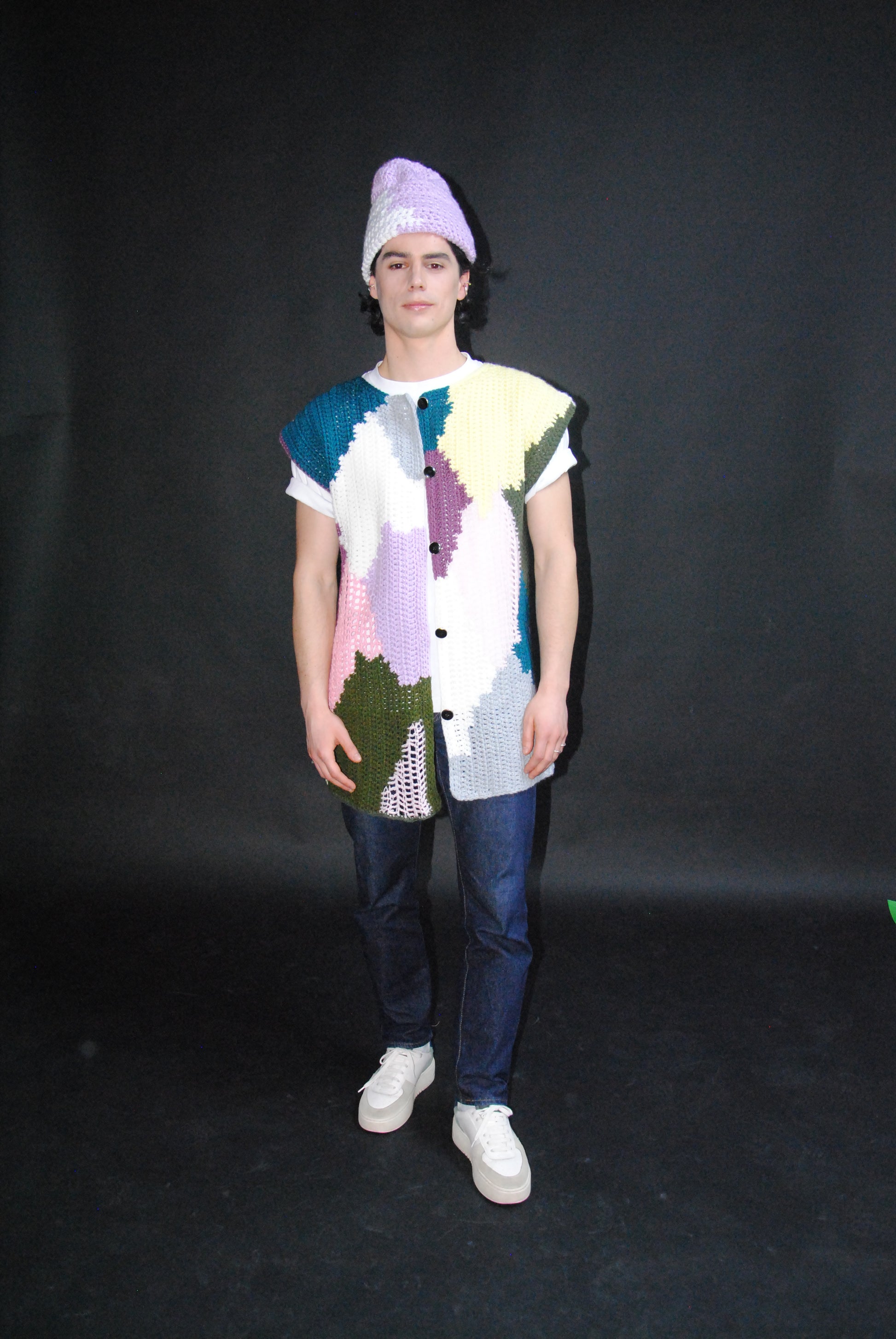 Genderless. Could be worn as a vest or as a top. Fits several sizes according to desired fit. Model in picture usually wears tops size small